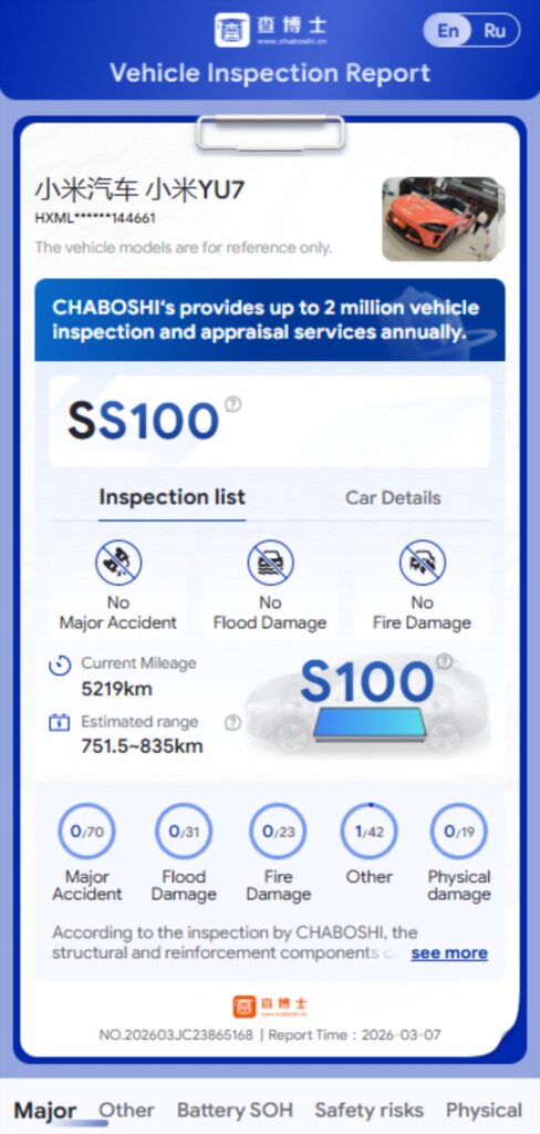 Всеки автомобил преминава през независима физическа инспекция от трета страна Dr.Cha.